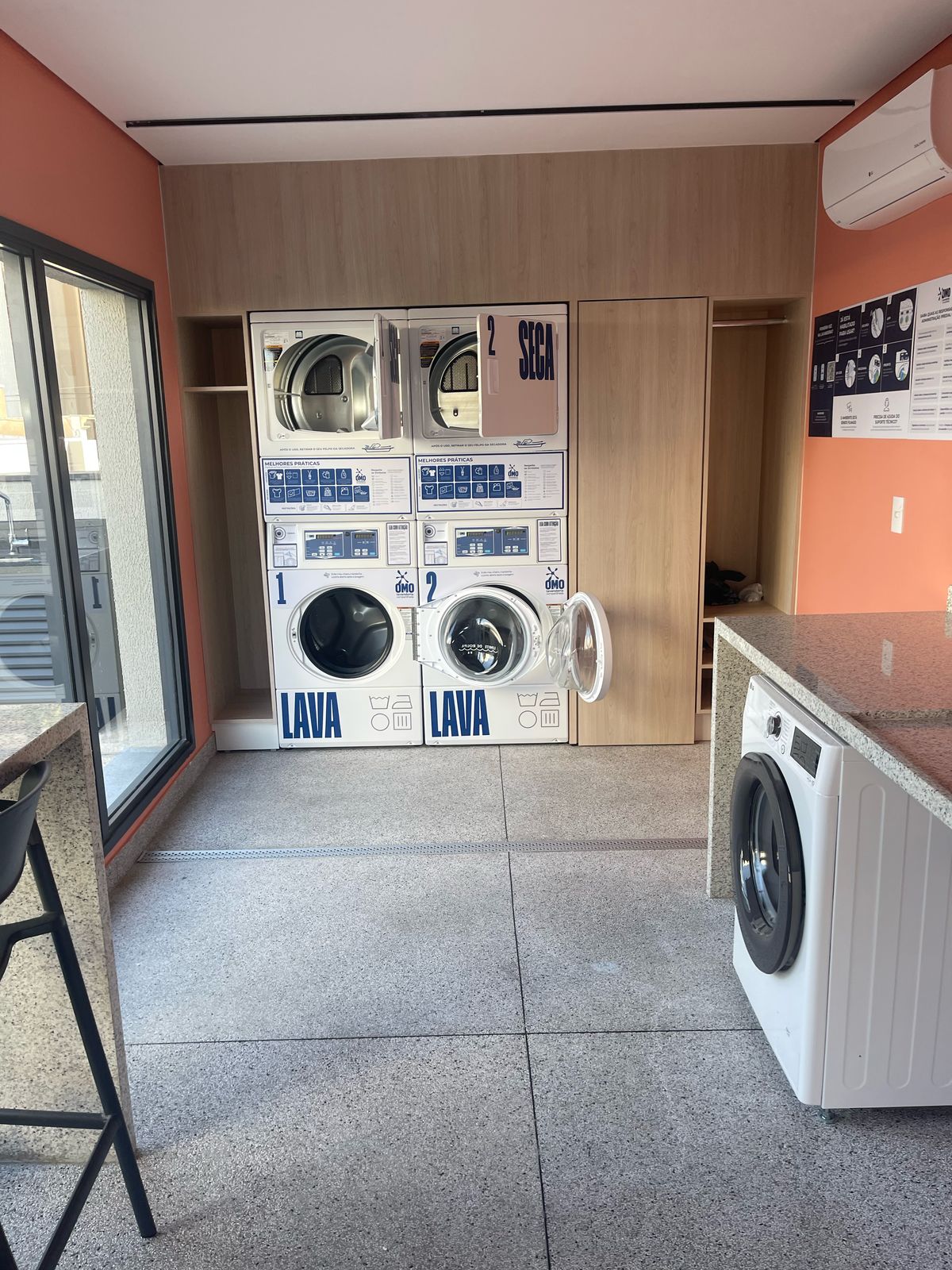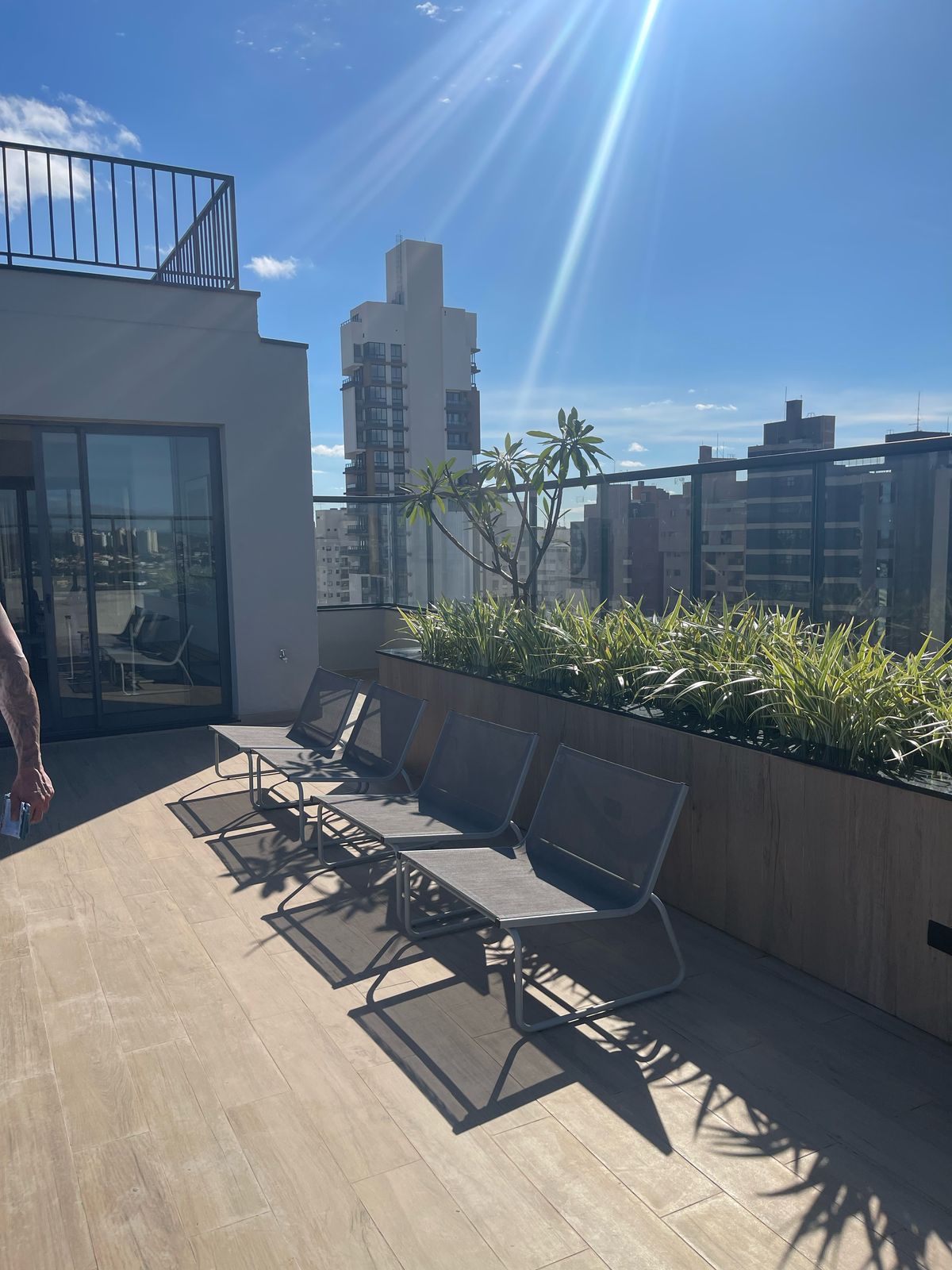 Seu hall de entrada conta com um fantástico pé direito alto, que garante que o 3° pavimento do empreendimento, exclusivamente pensado para o lazer de seus moradores, encontre-se muito acima do nível da rua. Garantindo privacidade para poder curtir tudo o que o espaço oferece: piscina de borda em vidro, cinema ao ar livre, wellness center, laundry e um espaço funcional que pode ser usado tanto como bar, quanto como coworking.